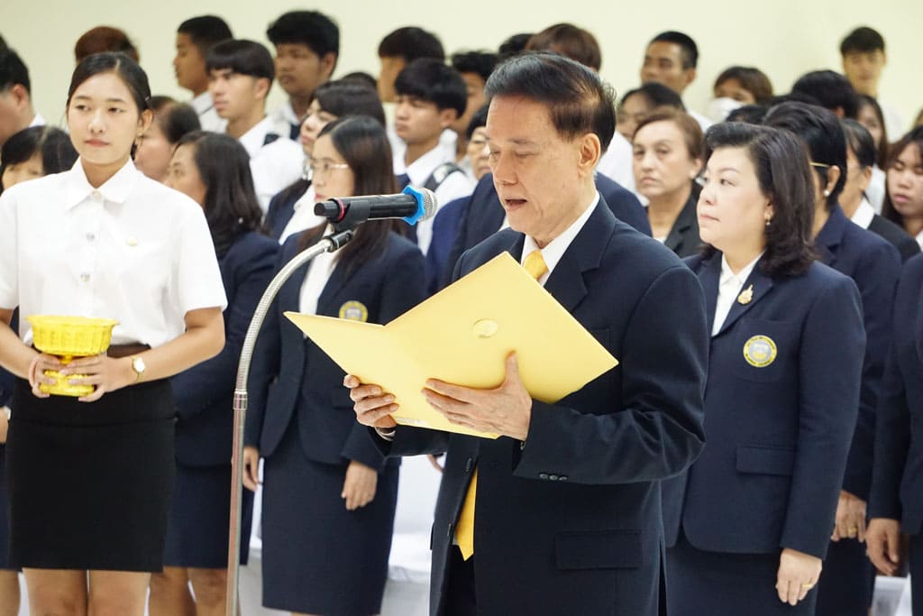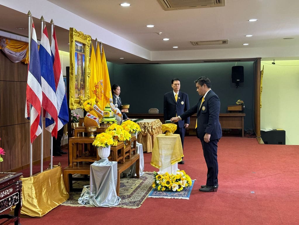 2024年7月26日星期五,瑞嘉普大学在庆祝泰国国王玛哈·哇集拉隆功陛下72岁华诞(2024年7月28日)之际,举办了吉祥祈福仪式。仪式由瑞嘉普大学理事会主席差育·何玛若差他教授主持,管理人员、教师和学生共同参与捐赠活动。