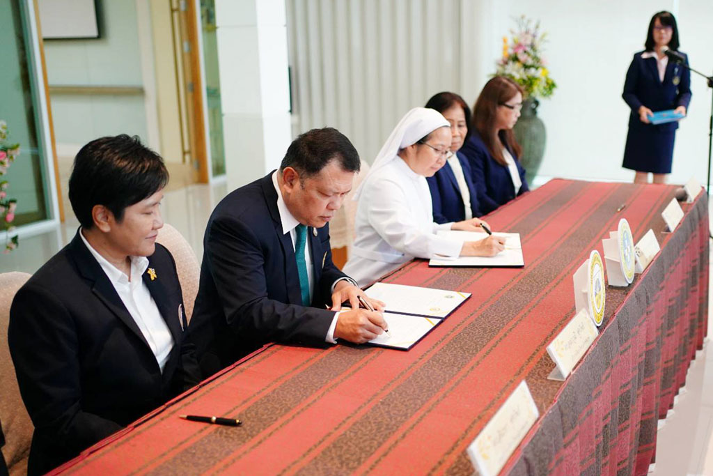 2024 年 6 月 26 日,瑞嘉普大学校长阿拉吾·楚萨 博士与副校长代表瑞嘉普大学与圣路易斯药学院(SAINT LOUIS COLLEGE)签署学术合作谅解备忘录。圣路易斯药学院将作为瑞嘉普大学的学术顾问机构,为瑞嘉普大学即将在2025学年成立的护理学院的教学提供指导和建议。
