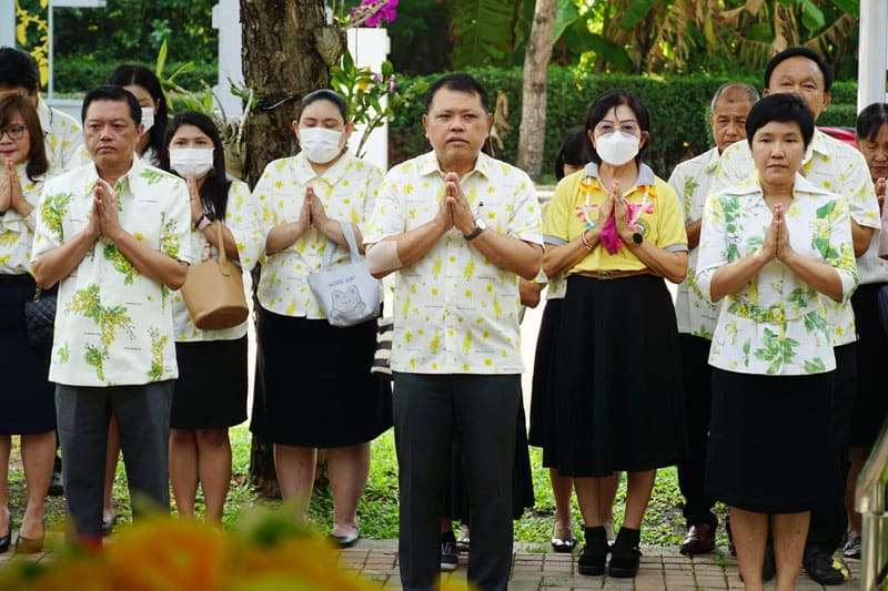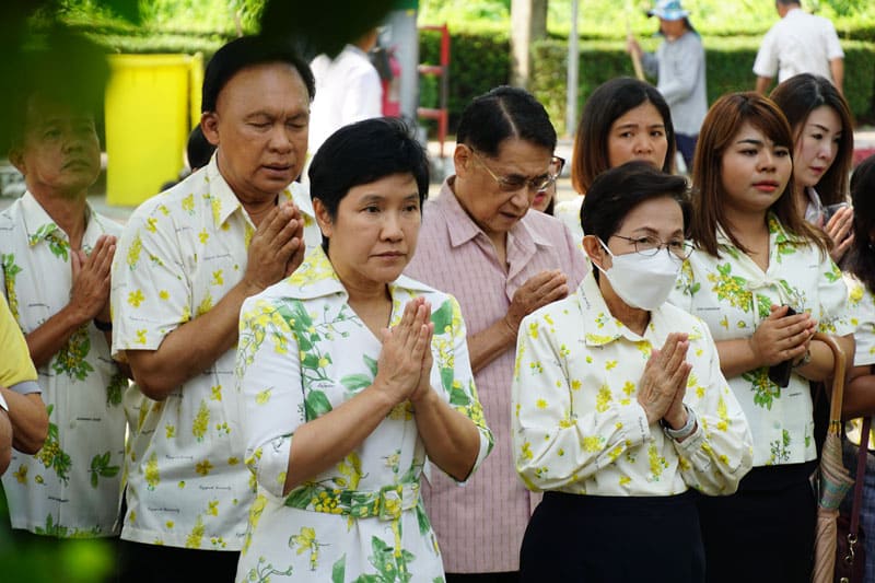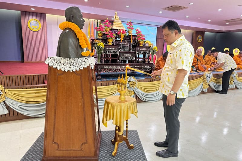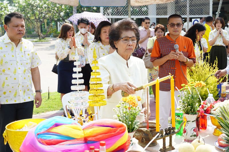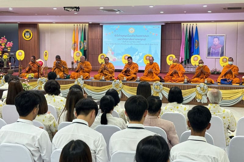 在2024年4月20日,瑞嘉普大学建校纪念日暨泰国泼水节之际,瑞嘉普大学举办了一场向九位僧人布施的功德仪式。在创始人维帕潘·楚萨博士的主持下,校长、副校长、管理人员、教师和学生齐聚瑞嘉普大学大会议室,共同参与了这一庄严的仪式。仪式上,他们一同布施、诵经,为佛像沐浴,并祈求福祉。