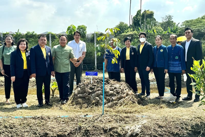 2023 年 11 月 8 日星期三,瑞嘉普大学荣幸请到了暖武里府府尹 Sutee Thongyam 先生, 主持了瑞嘉普大学暖武里榴莲保护中心的开幕仪式。瑞嘉普大学暖武里榴莲保护中心位于暖武里府邦圭县邦卡暖区 9 号。该榴莲保护中心种植了来自暖武里府的 9 种传统榴莲品种,包括暖武里长柄、暖武里金枕、Med Nai Prang、Yam-ma-wat、Suwan、Kop Chai-nam、Kra-dum、Lueang和Ka-thoei Nuea-khao品种。该中心的建立这是为了更好地保护暖武里府的榴莲品种,并可以作为学生和民众学习的重要资源。
