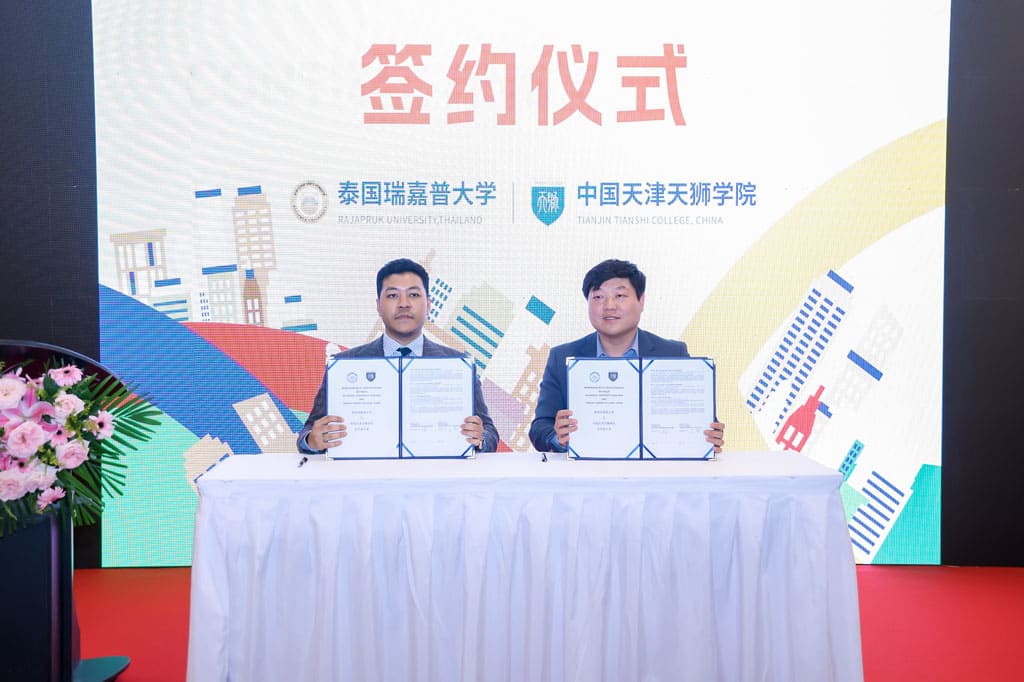 2025年4月24日,泰国瑞嘉普大学Noppasit Choosup 副校长与国际学生办公室主任姚祖民,代表瑞家普大学出席“2025第三届北京国际教育与海外留学展暨全国留学行业合作大会”。在此次访问期间,瑞嘉普大学与中国天津天狮学院成功签署了学术合作与交流谅解备忘录(MOU),共同推动两校在高等教育领域的深入合作与发展。