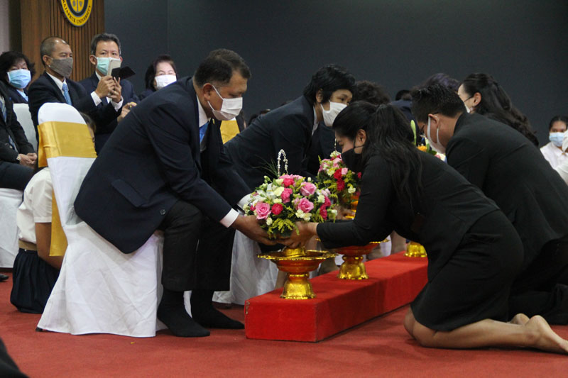 2020年8月13日 星期四 瑞嘉普大学的领导们和全体师生在瑞嘉普大学崇圣楼五楼的礼堂举行了2020年拜师节仪式。在活动中学生代表向老师献上鲜花,以表达对老师的尊重和感谢。
