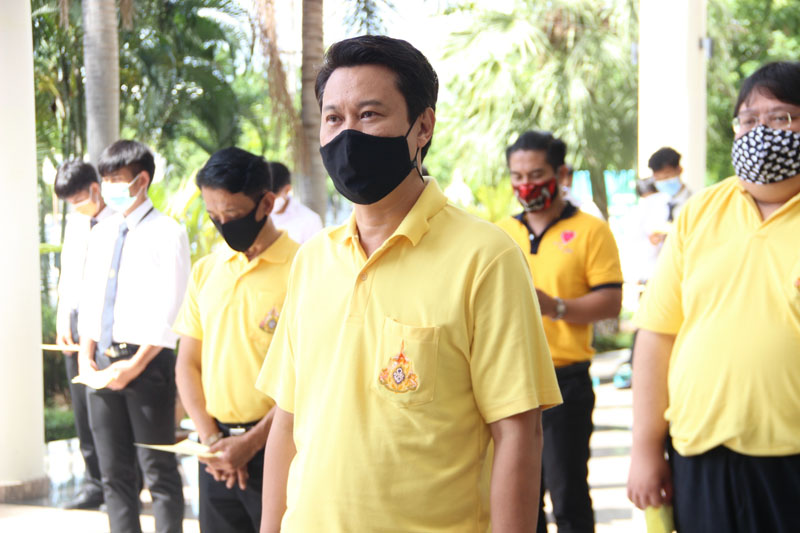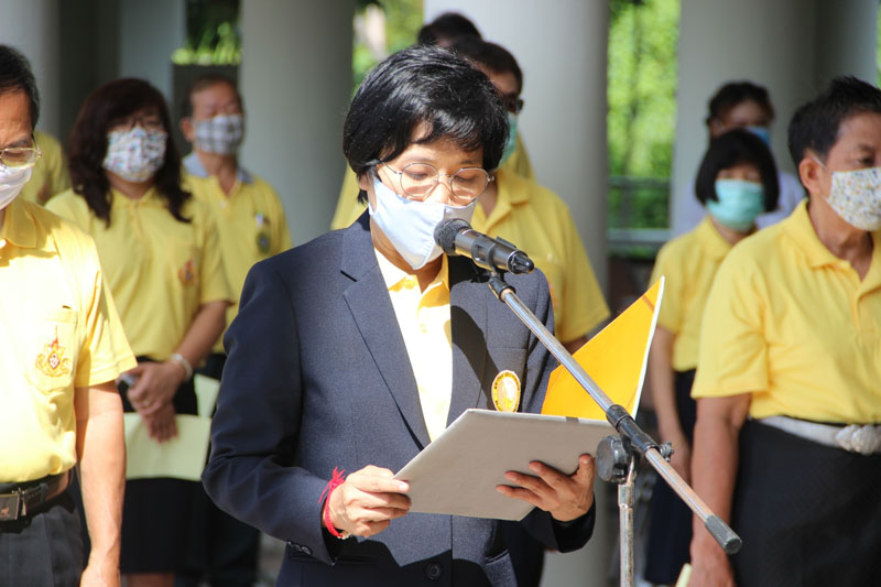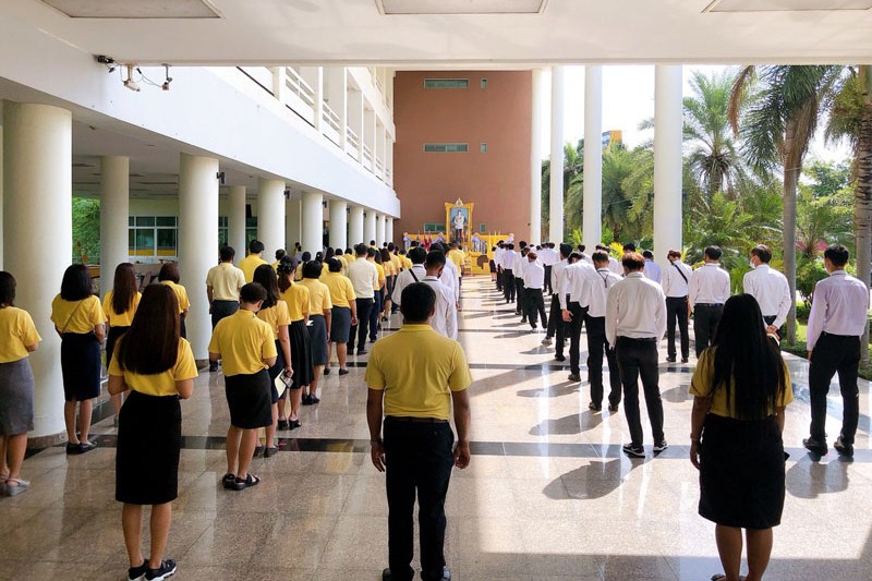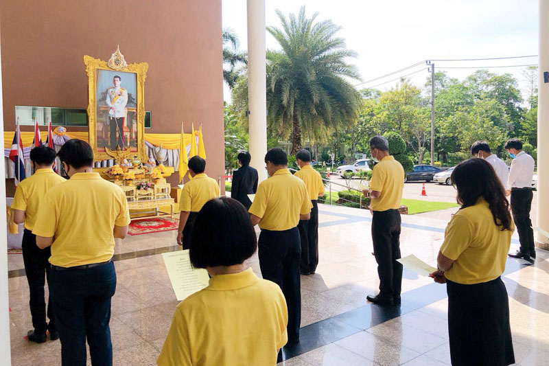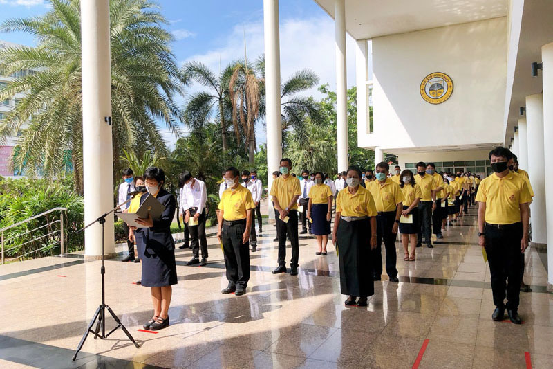 2020年7月24日 星期五 瑞嘉普大学的领导们在瑞嘉普大学崇圣楼参加了泰国拉玛十世国王的诞辰典礼。瑞嘉普大学行政副校长Suntaya博士主持了此次典礼,并代表瑞嘉普大学全体师生向拉玛十世王祝愿诞辰,并在拉玛十世王的肖像前摆放鲜花和香烛。