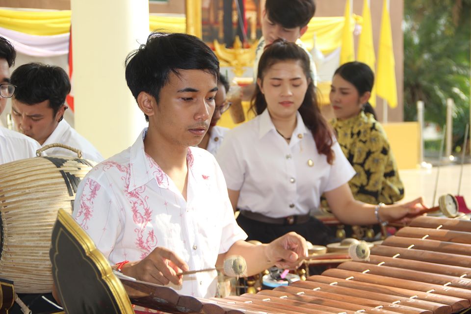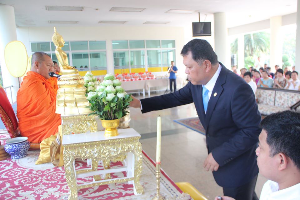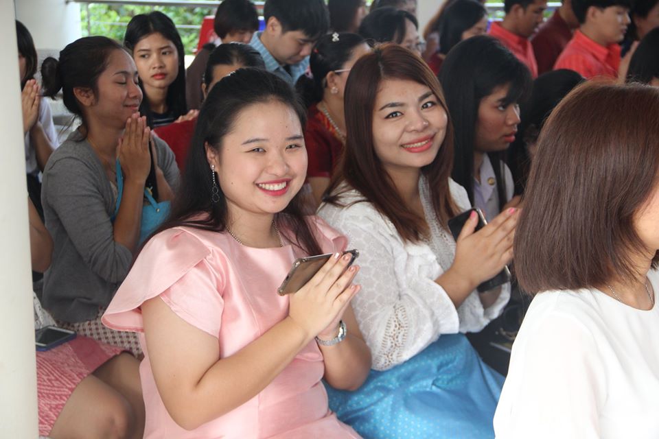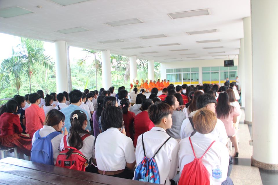2019年12月25日星期三为了吉祥幸福,为了健康,在2020年新年到来之际,瑞嘉普大学在崇圣楼(俗称第一号楼)举行斋僧行善活动。早上瑞嘉普大学校长阿那武博士及全体师生虔诚向僧侣敬献物品。这次善事活动使大家的心情更加愉悦平和,让自我的人生更有意义。