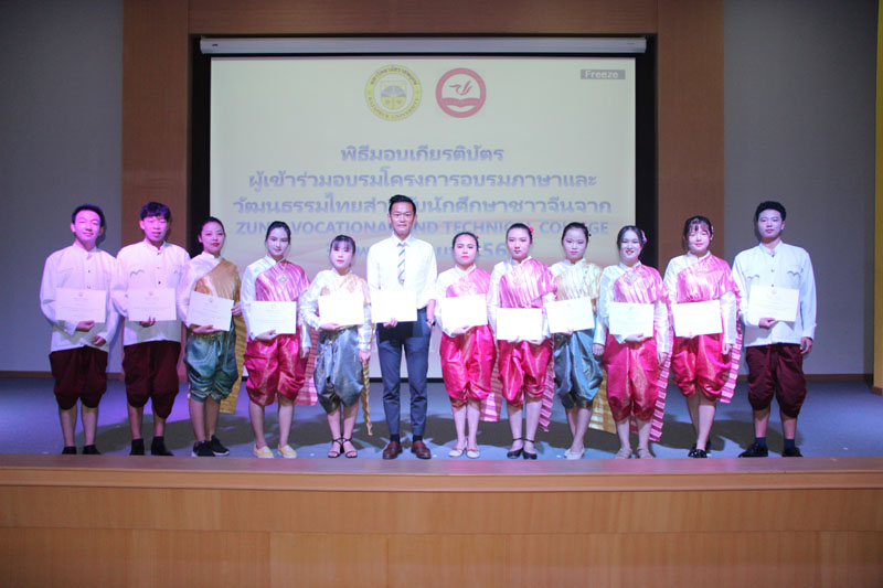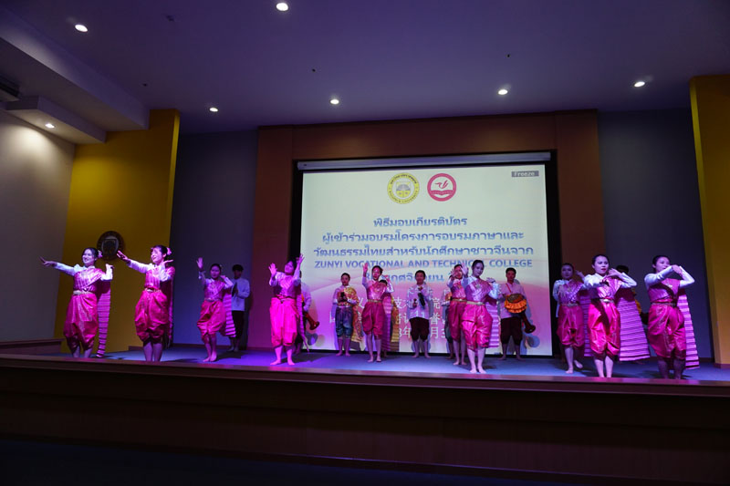 2018年11月30日瑞家普大学为遵义职业技术学院3个月中国学生泰语文化培训项目的学生举行证书颁发仪式并对所学内容做了汇报表演,校长Anawut Chusupath博士副校长Santaya Daraarat博士也参与了本次仪式,并为中国学生颁发了证书。中国 – 东盟大学学生文化周刊2018年11月25日至29日,瑞家普大学泰国文化艺术办公室,组织领导泰国学生到中国海南省海口市海口经济学院参加中国 – 东盟大学生文化周活动,展示泰国文化。