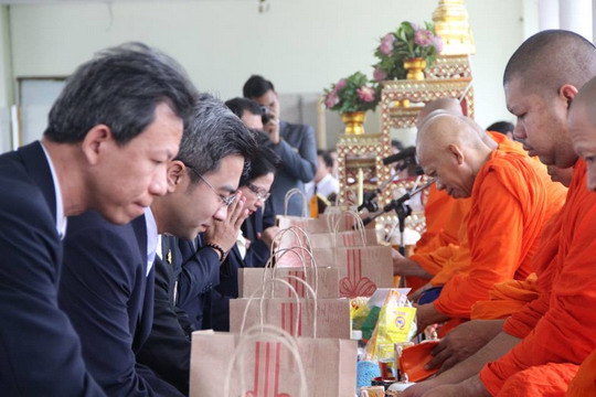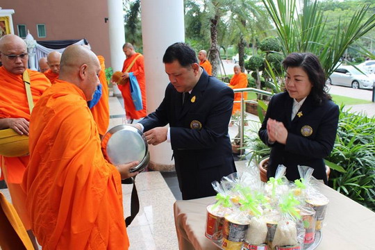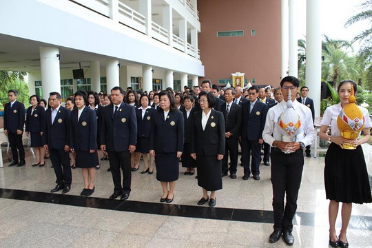 8月9日上午8点40分,瑞嘉普大学学校领导率领学校全体教职工以及每个学院的学生代表为泰国诗丽吉王后祈福。
