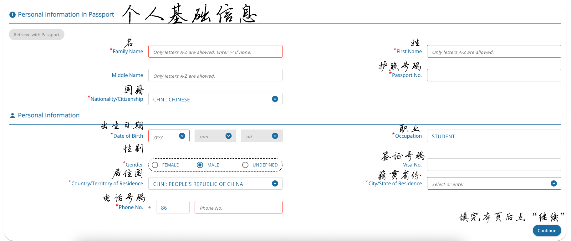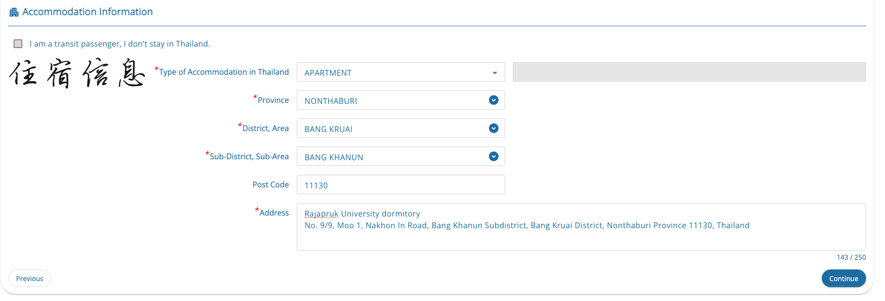 住宿信息,如果住在大学宿舍请根据页面上的内容填写。