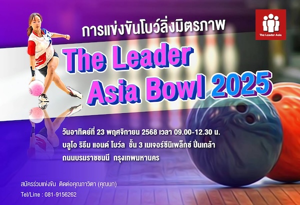 2025 年 11 月 23 日(星期日)上午 9:00 至 12:30 在曼谷 Major Cineplex Pinklao 三楼 Blue-O Rhythm & Bowl 成功举办了 “The Leader Asia Bowl 2025” 友谊保龄球比赛。