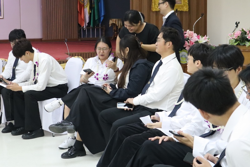 学术事务副校长 Asst. Prof. Dr. Raywadee Sakdulyatham、副校长 Noppasit Choosup 以及工商管理学院院长 Asst. Prof. Dr. Arpornranee Infahsaeng 也先后致辞,向新生寄予美好期望,并鼓励他们发挥自身优势,为中泰文化交流贡献力量。